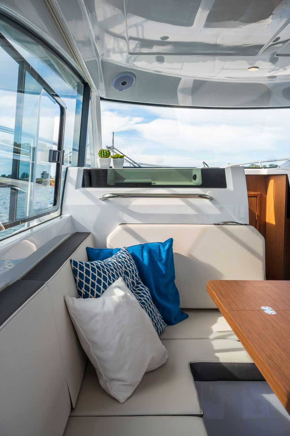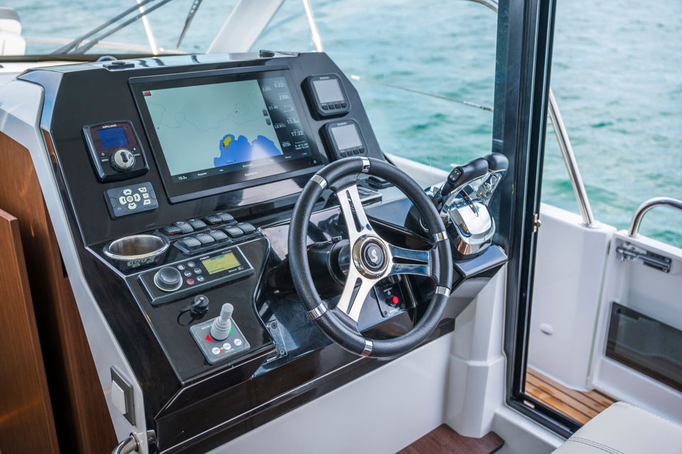 Prostrani flybridge pruža savršeno mjesto za odmor i druženje, s dvije klupe okrenute jedna prema drugoj, velikim sunpadovima i panoramskim pogledom. Kokpit i flybridge nude dovoljno vanjskog prostora za obitelj i prijatelje, dok brojne prozorske stijene i trosklopiva klizna vrata osiguravaju obilje prirodnog svjetla u unutrašnjosti.