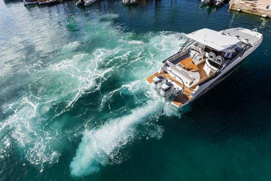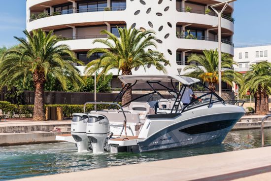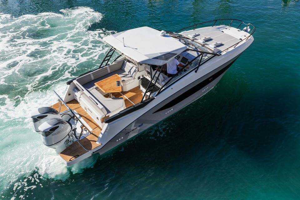Flyer 10 Sport Top spaja udobnost i performanse, nudeći savršenu ravnotežu između sportskog upravljanja i ugodnog krstarenja. Pogonjen dvostrukim Mercury motorima od 350 KS V10 s JPO, pruža izvrsno ubrzanje, glatko manevriranje i sigurnost na otvorenom moru. Air Step® trup poboljšava stabilnost, učinkovitost i udobnost, dok Sport-Top s otvarajućim krovom pruža zaštitu i dobru ventilaciju.