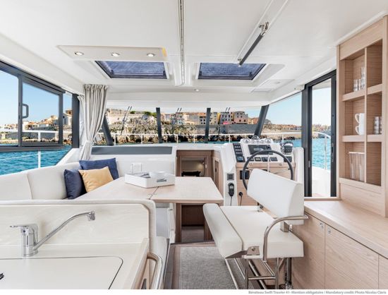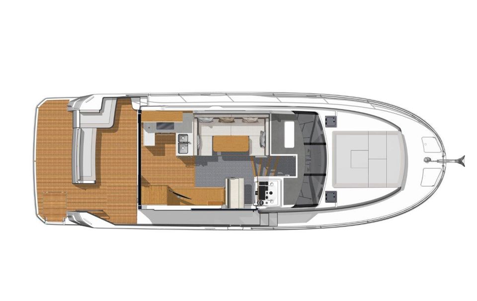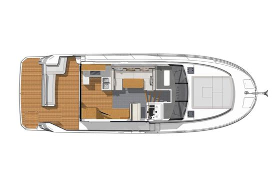 Vanjski prostori nude sklopivi kokpit-stol, flybridge stol s flip-top mehanizmom i tapeciranje Dolce 51 – Comfort. Sigurnost i praktičnost povećavaju podvodna svjetla i stražnja kamera. Panoramski pogled s flybridgea upotpunjuje doživljaj, stvarajući izvanredno iskustvo krstarenja za prijatelje i obitelj. Inovativan dizajn i fleksibilni rasporedi čine Swift Trawler 41 Fly vrhunskim izborom za duga krstarenja s stilom i sofisticiranošću.