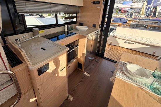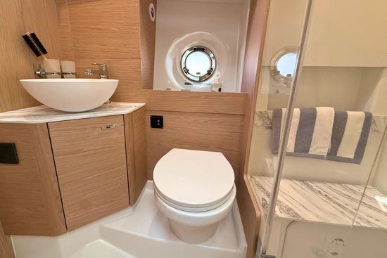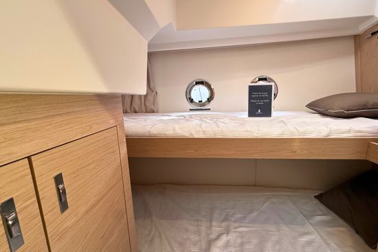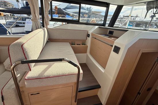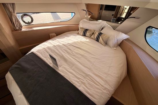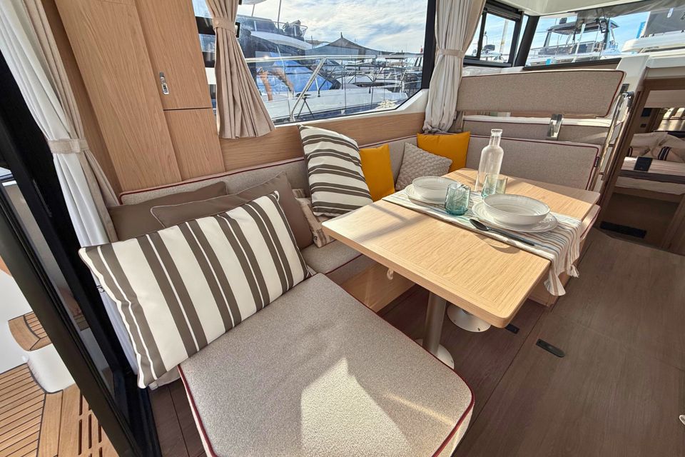 Unutrašnjost uključuje prostranu vlasničku kabinu, gostinjsku kabinu s dvostrukim pristupom kupaonici i praktičnu kuhinju u obliku slova U. Kauč u salonu pretvara se u dodatni ležaj, pružajući dodatnu fleksibilnost.