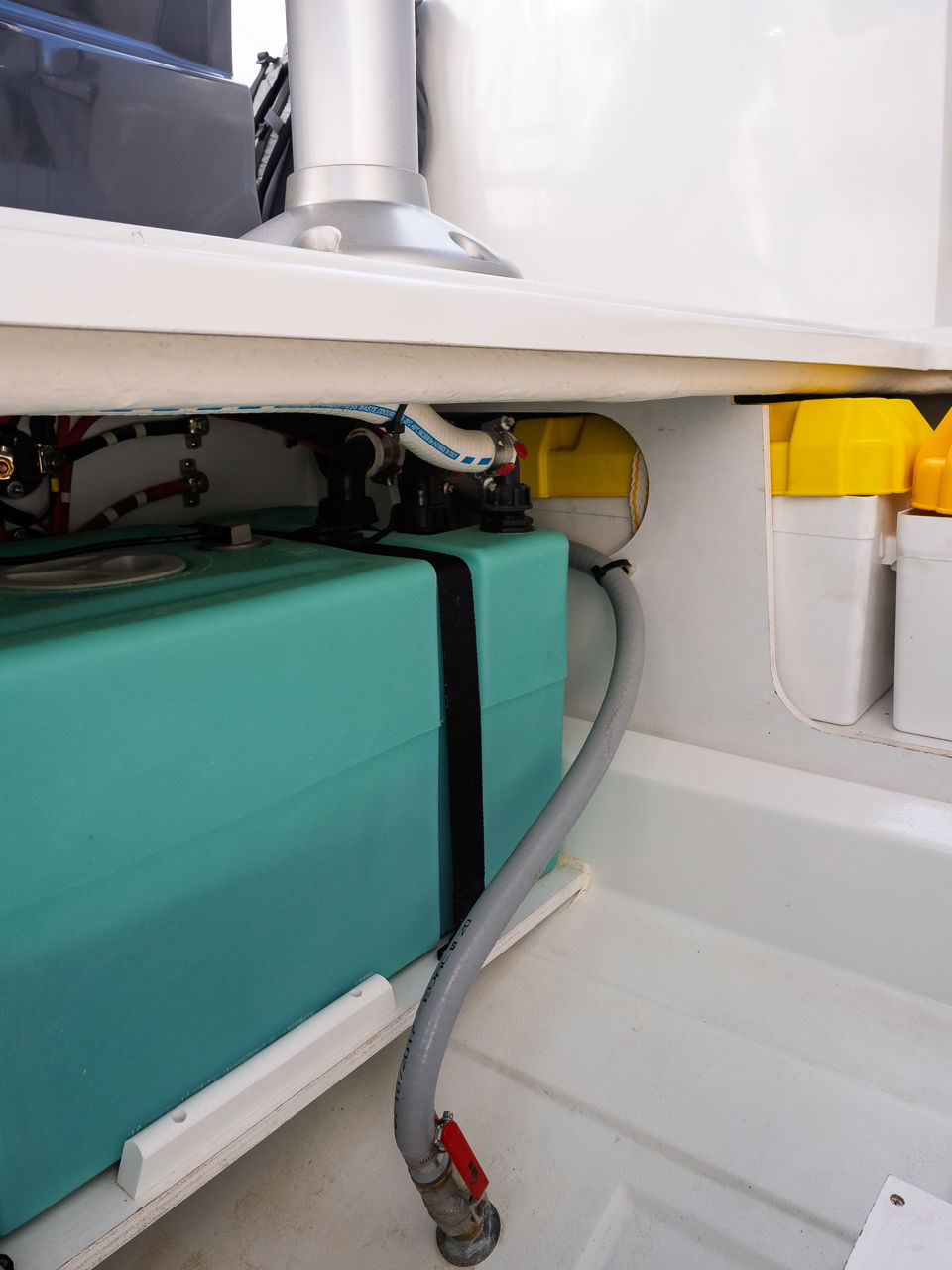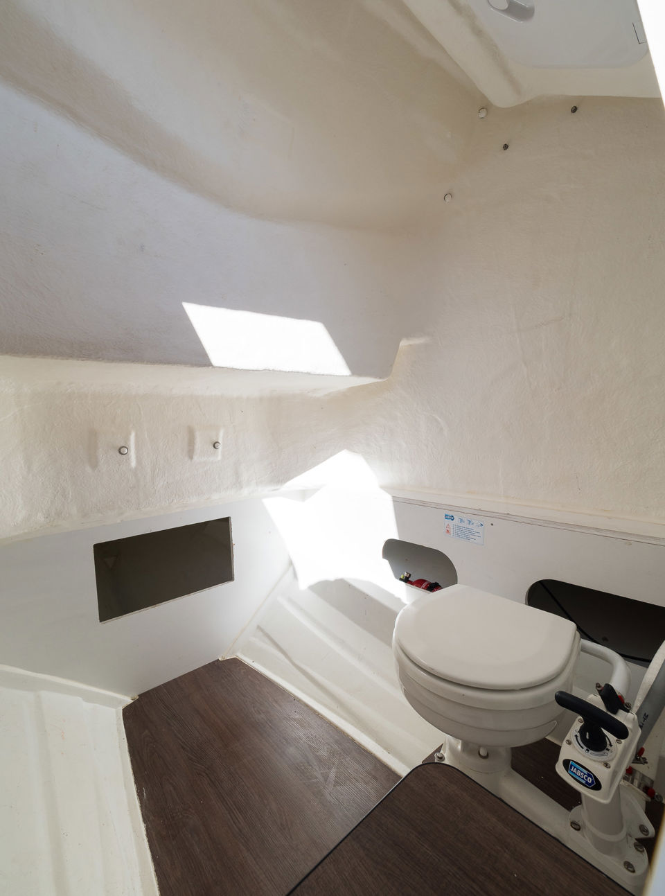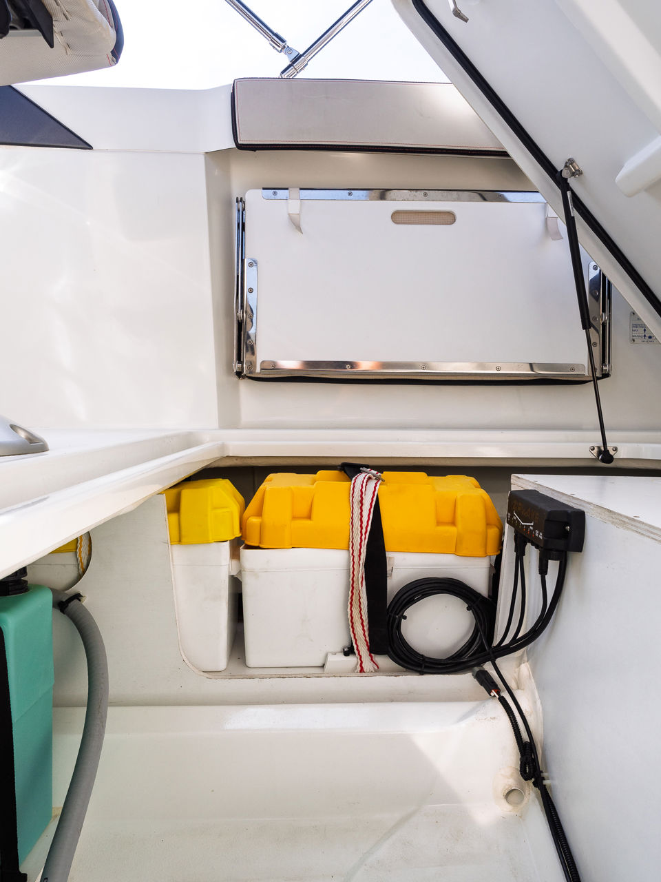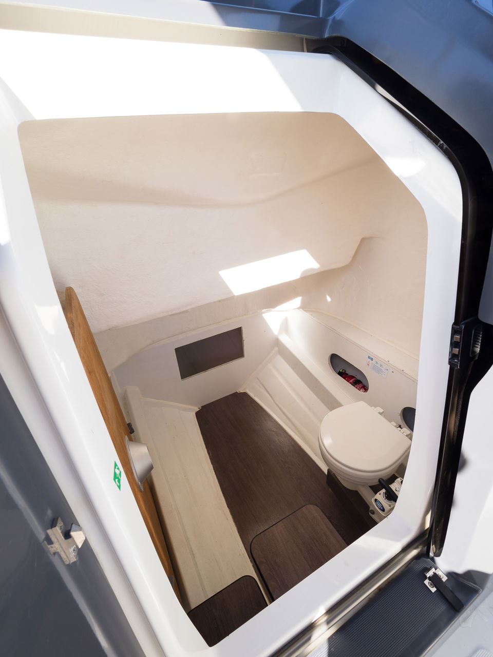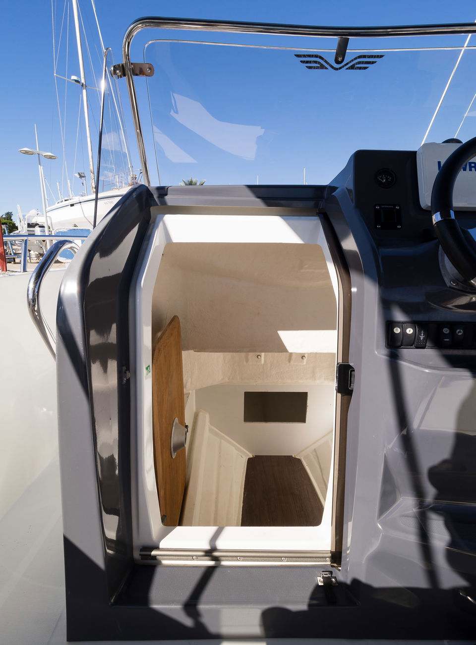Plovilo je prostrano i udobno, opremljeno centralnom konzolom koja povećava slobodan prostor za putnike, a paluba nudi sve pogodnosti za cijeli dan na moru – od mjesta za odmor i objedovanje do praktičnih platformi za kupanje i tuširanja.