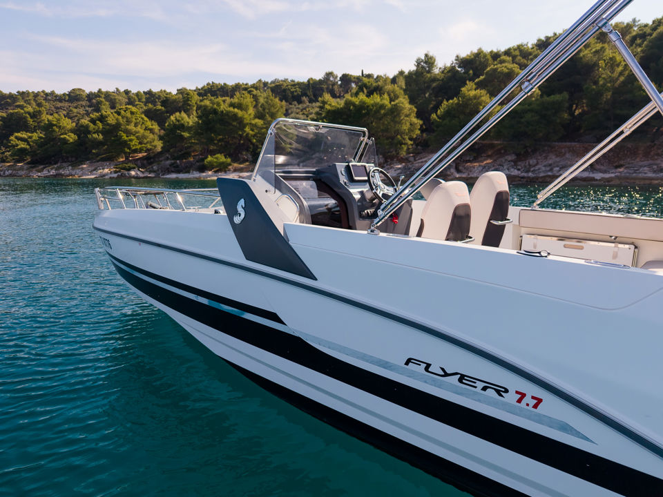 Izvrsno održavan Beneteau Flyer 7 SPACEdeck, korišten isključivo u privatne svrhe, idealan za obiteljske izlete i dnevna krstarenja. Brod je jednostavan za upravljanje i lako se održava, a snažan Honda 250 HP motor omogućava brzo i sigurno dolazak do željene destinacije.