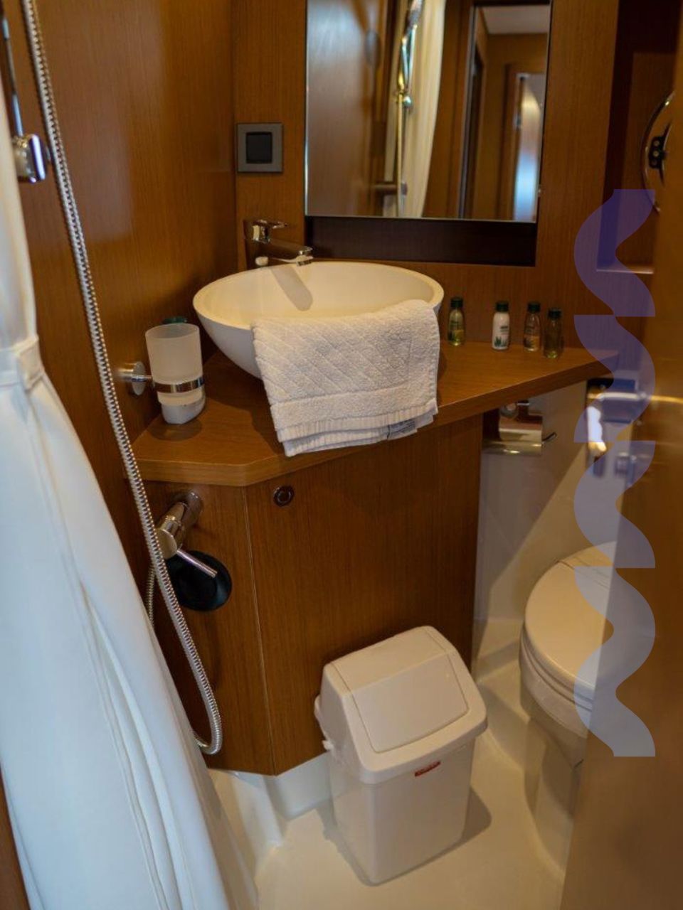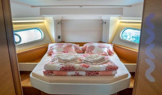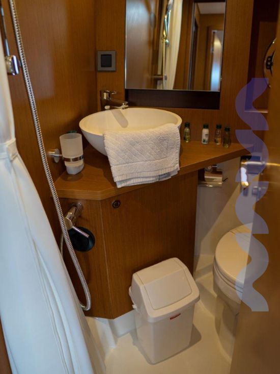 Powered by twin Volvo Penta D4-300 engines and supported by a bow thruster with dual control stations, she offers confident and easy handling in all conditions. A generator, air conditioning system, and watermaker provide complete autonomy for extended stays at sea without reliance on shore facilities.