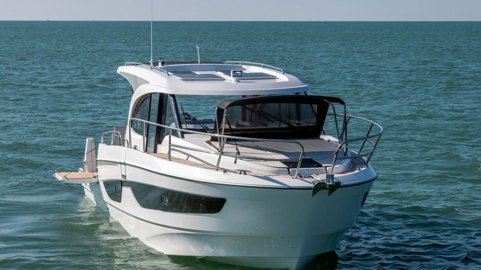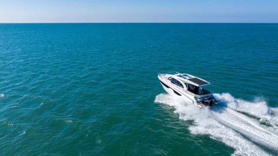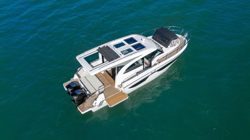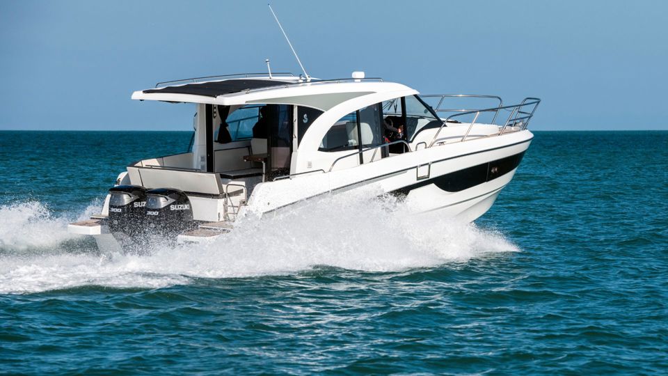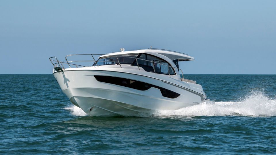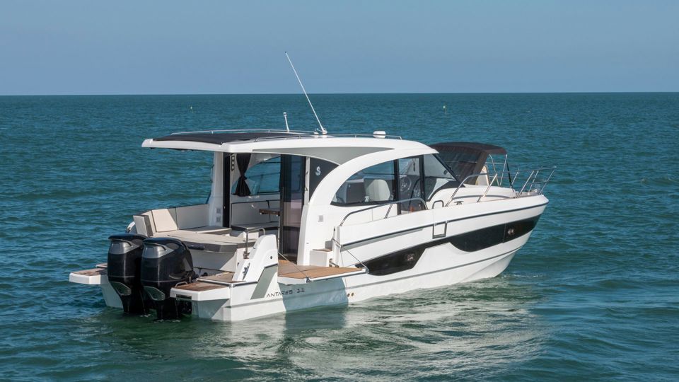 Step into refined cruising with the Antares 11 OB, a modern outboard cruiser designed to balance performance, comfort, and intelligent use of space. Powered by twin Suzuki 300 HP engines with joystick control, the boat delivers confident handling and smooth maneuvering whether docking in a marina or exploring coastal destinations.