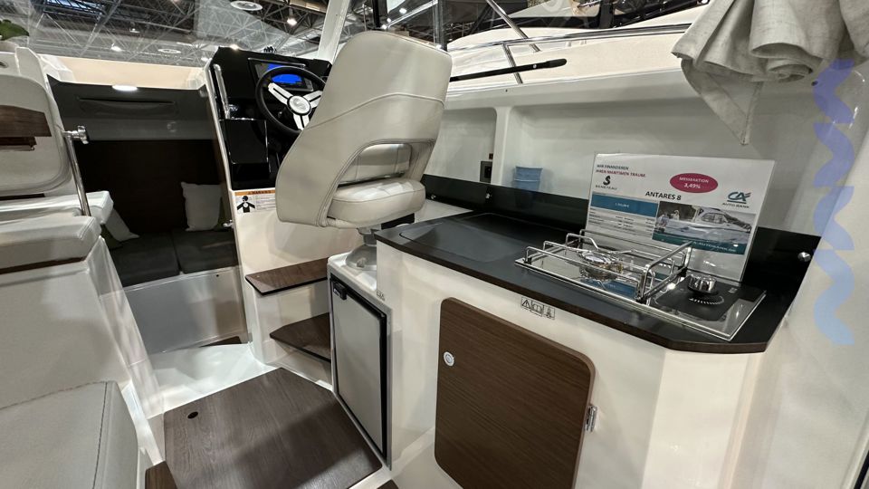 The redesigned Antares 8 OB is more innovative and versatile than ever, combining power, agility, and elegance for short voyages or extended cruising. Its new flared hull ensures excellent seakeeping, while the deck offers three cockpit seating layouts for ultimate flexibility.