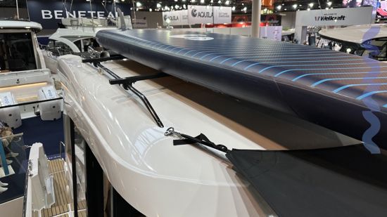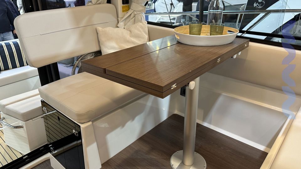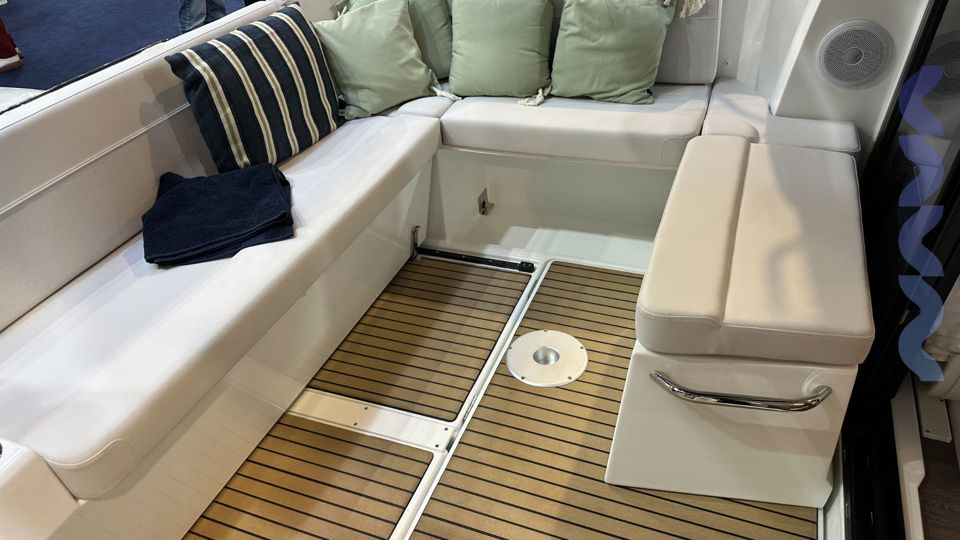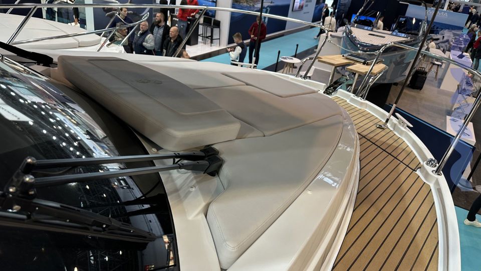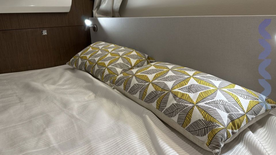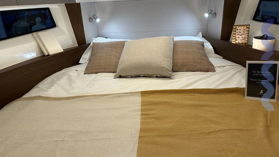 Additional features include a bow thruster, mooring and anchoring kit, removable cockpit table with extra seat, extended stemhead with swimming ladder, dock water inlet, electric fresh water toilet, Zipwake automatic trim system, linedeck on the forward deck.